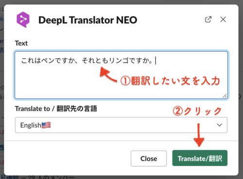 こんにちは! CIO室コーポレートエンジニアリンググループでインターンをしている赤羽です。 この記事は、マネフォアドベントカレンダー2021 7日目の投稿です。 今回はSlack上でショートカットから呼び出せるDeepL翻訳アプリを紹介します。 今回紹介するア…