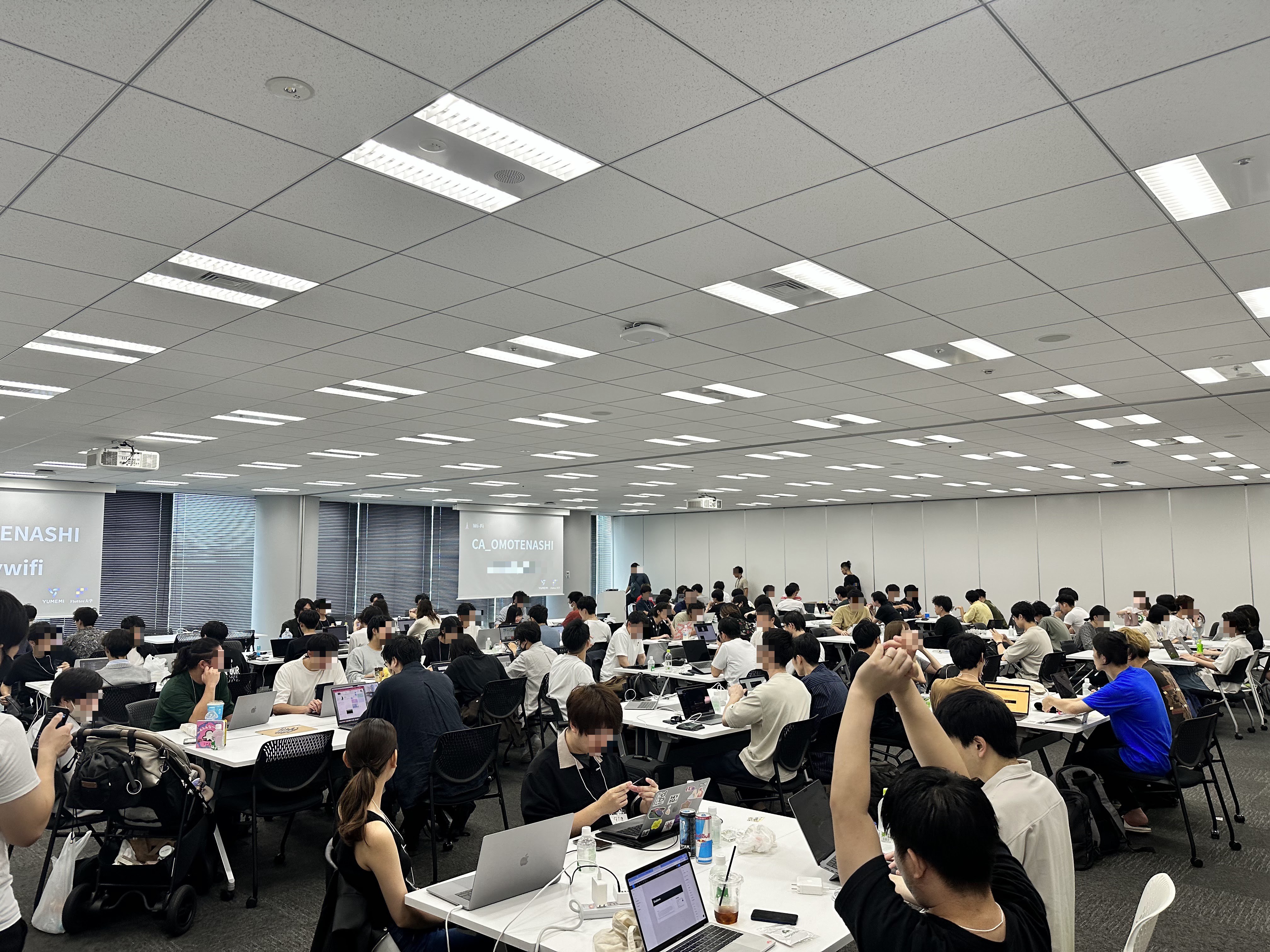 東京Flutterハッカソンとは、Flutterエンジニアコミュニティの Flutter大学 とFlutterエンジニアが多数所属する 株式会社ゆめみ の共同開催による、Flutterに特化したハッカソンです。今年が初開催でしたが、100人を超えるエンジニアが参加し、会場のアベマタワーズにて2日間熱い戦いを繰り広げました。